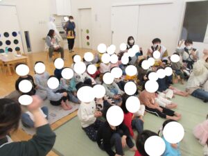 「今日は何の日?」と担当が子どもたちに尋ねると、元気よく「クリスマスー!!」と教えてくれました。サンタさんに聴こえるように「あわてんぼうのサンタクロース」も歌いました!年長児さんはハンドベルも披露してくれましたよ!