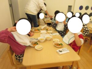 幼児さん、かぼちゃさん(2歳児)はホールでクリスマスバイキングでした。クリスマスの特別メニューを美味しく楽しく食べました。サンタさんありがとう☆
